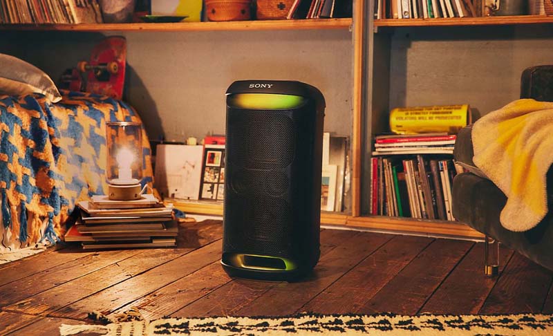 Grab the SRS-XV500 wireless party speaker and take the party wherever you go. This speaker packs powerful sound, built-in lighting and a long-lasting battery—you can even plug in a karaoke mic and sing the night away. With the XV500, you have everything you need to entertain your friends and family.