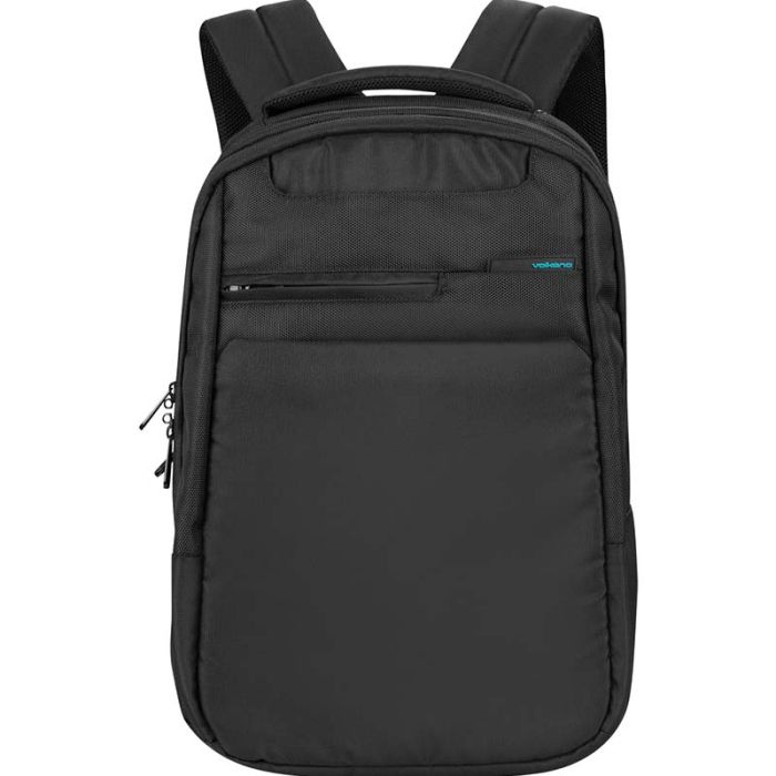 Stealthy and sleek, the volkano suave laptop backpack lives up to it's name in every way. Featuring 6 compartments with multiple sleeves, card holders and pen holders, in addition to lockable zip, this bag is full of fantastic surprises. Black and professional on the outside, the inside stuns with a brilliant display of bold turquoise and boasts a large capacity for ultimate functionality and convenience. The 15.6" padded laptop compartment protects your device from bumps and scratches.
