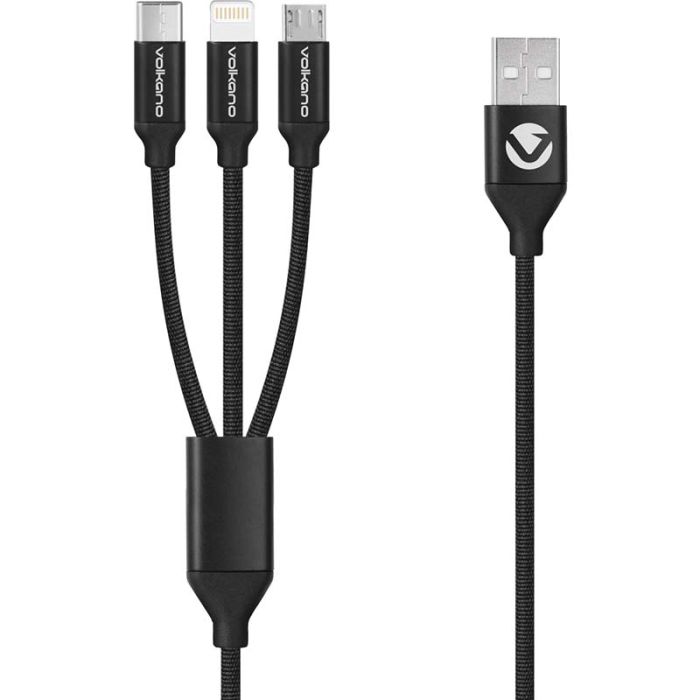 Volkano Weave Series 3 in 1 Charge Cable 1m - Black